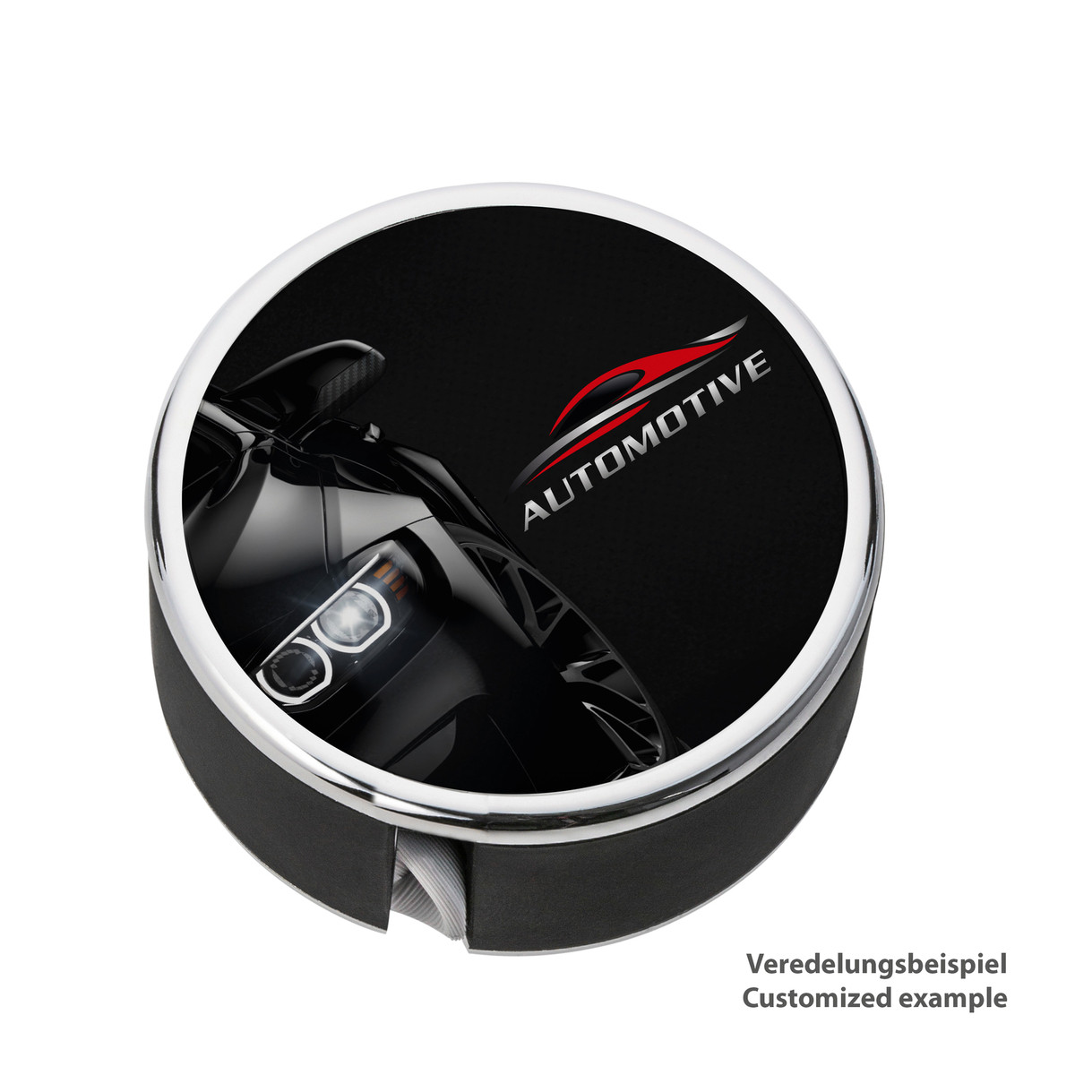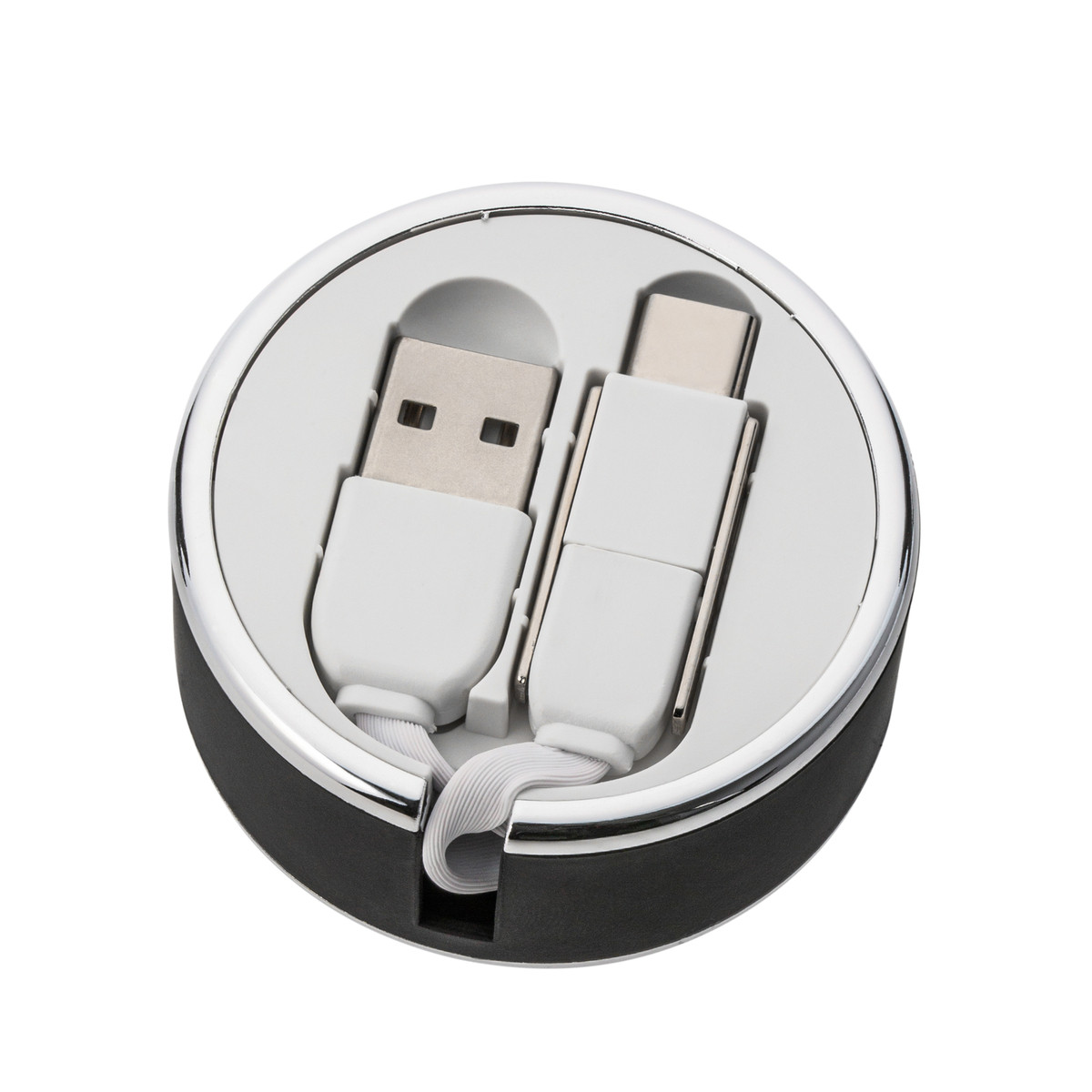 Le REEVES-LAKEWOOD vous permet de charger votre électronique sans câbles emmêlés. Câble de rechargement 3 en 1 dissimulé dans un boîtier élégant avec enrouleur. Grâce à l'enrouleur de câble, celui-ci disparaît à nouveau si désiré à l'intérieur du pratique boîtier. De plus, grâce à cette fonction, vous pouvez ne faire sortir que les câbles nécessaires et éviter ainsi de trébucher dessus. Le rechargement est possible pour les ports USB, micro-USB, USB-C, ou à 5 broches pour Apple. La surface visible du boîtier peut être entièrement couverte avec votre logo en quatre couleurs.