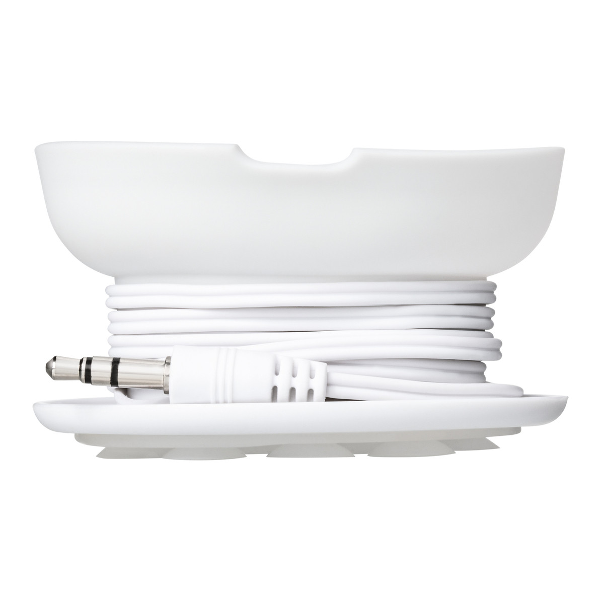 Cette petite boîte contient un jeu d'écouteurs avec les bouchons de même coloirs. La boîte se fixe directement sur le smartphone à l'aide de ventouses et peut une fois dépliée être utilisée comme support pour l'appareil. Avec une personnalisation quadri REFLECTS-UV-Print , il est particulièrement impressionnant.