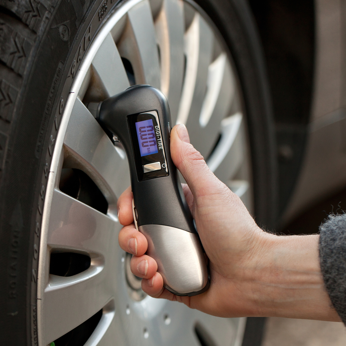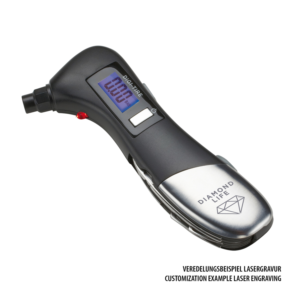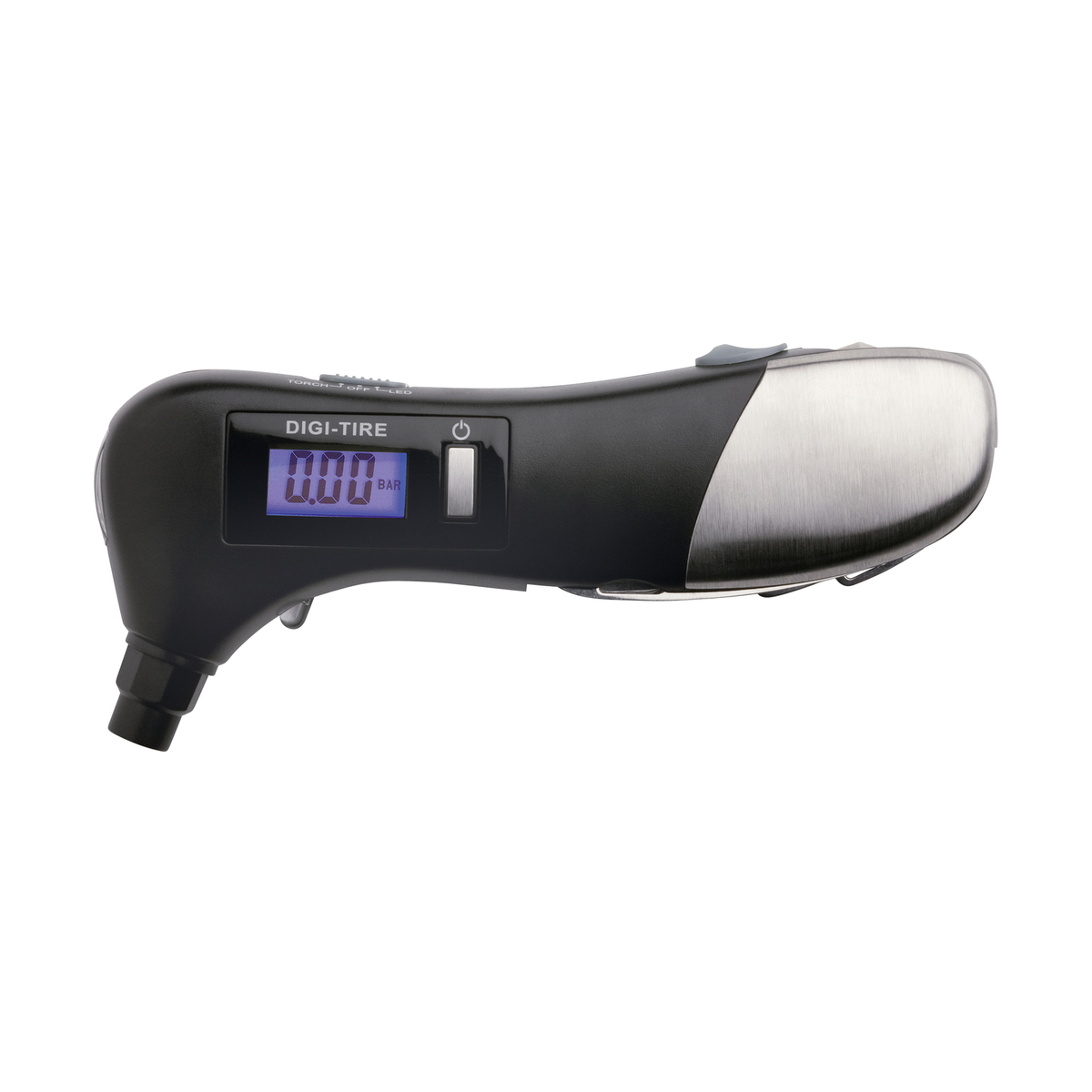 Ce manomètre pour pneus dispose d'une lampe de poche LED, d'un marteau et d'une lampe d'urgence.