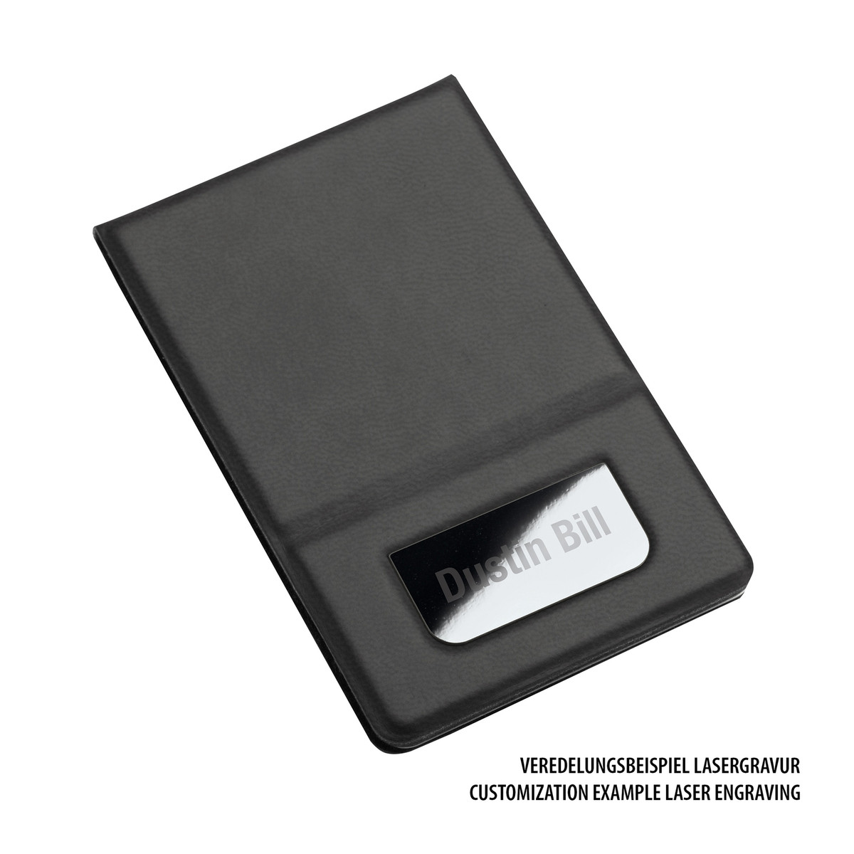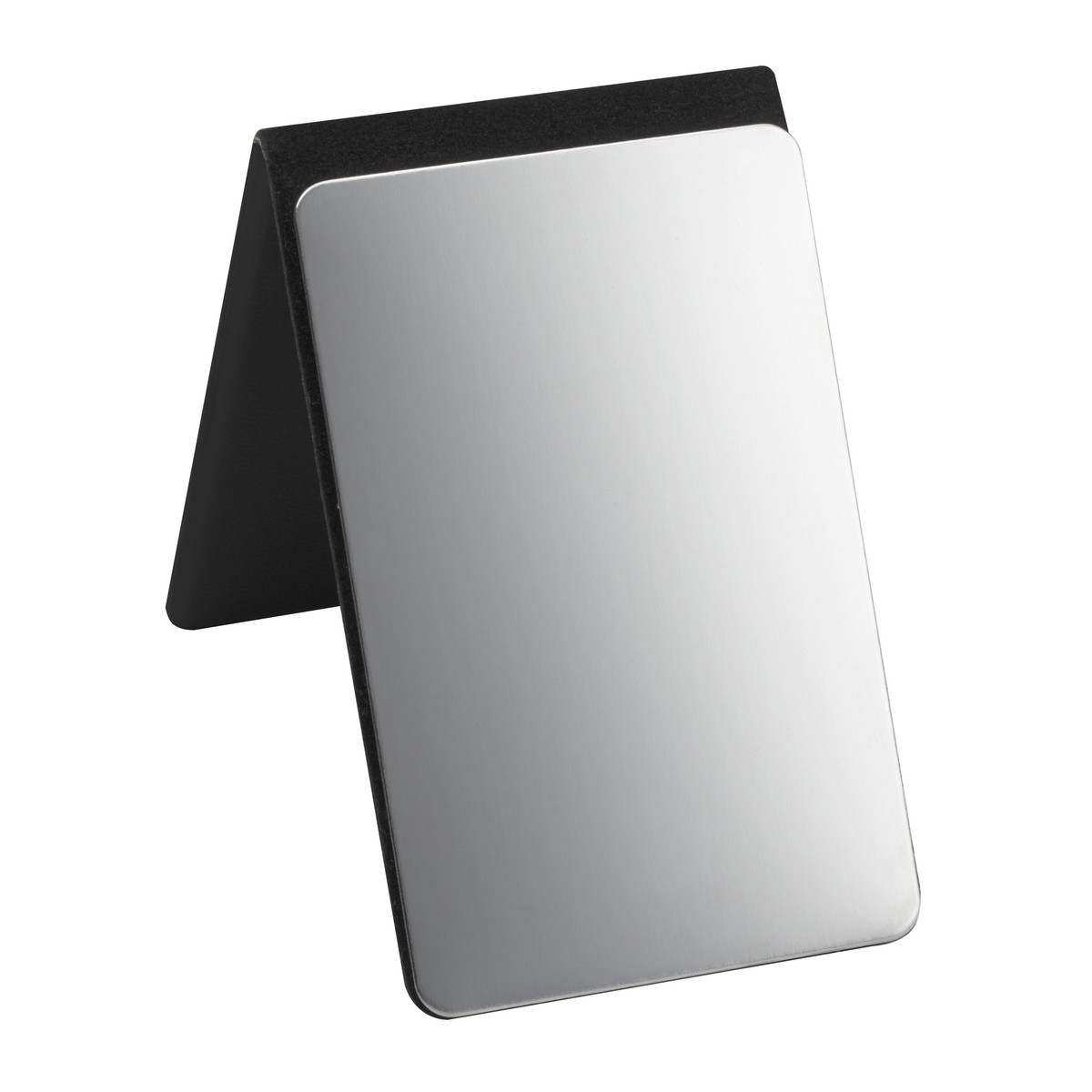 Miroir de poche léger en similicuir souple et non-tissé intérieur. Le miroir peut se poser en pliant l’enveloppe extérieure. L’extérieur arbore une petite plaque métallique (placage gunmetal) pour une gravure laser élégante. Il est aussi possible de personnaliser l’article avec une impression tampon 1c.Questions sur le produit "Miroir de Poche RE98-HARBEL noir" ?