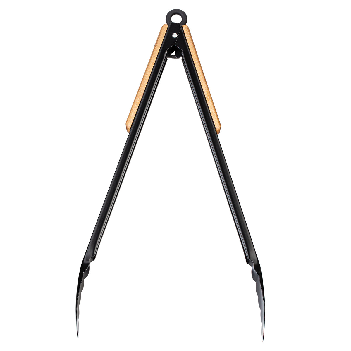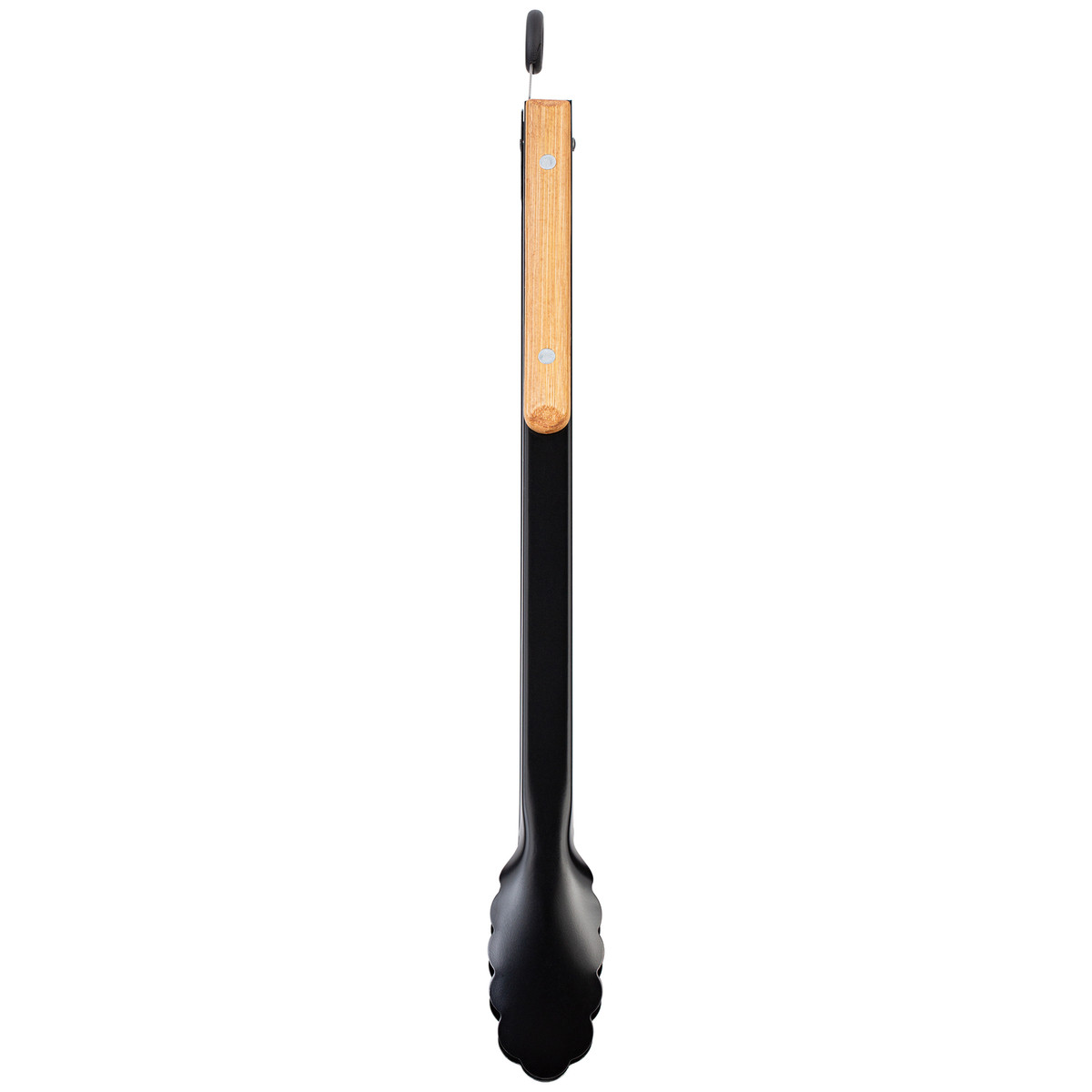 Le bambou rencontre l'acier inoxydable: pince à barbecue laquée noire avec manche en bambou