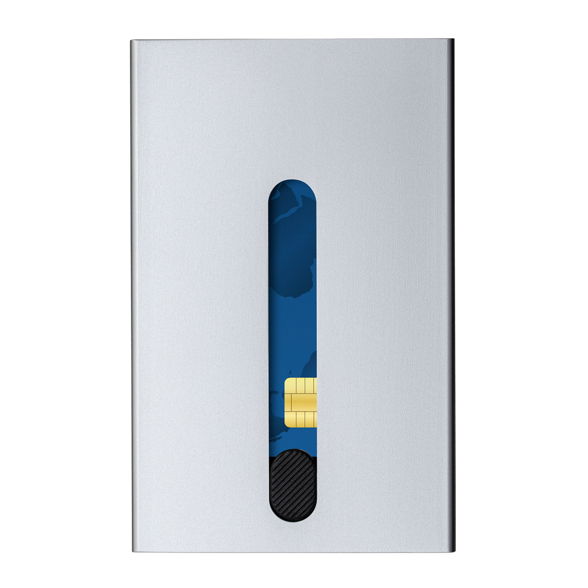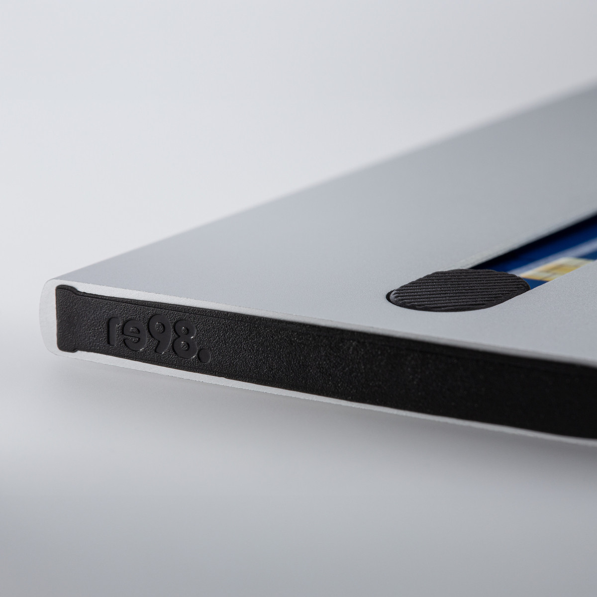 Le porte-cartes de crédit RE98-Grand Ouvert est une création interne de REFLECTS®. Avec sa taille compacte, l'étui s'adapte à n'importe quel sac et offre une sensation de légèreté et de confort en main. Jusqu'à 5 cartes de crédit peuvent être stockées dans l'étui. Grâce à un mécanisme coulissant intuitif, les cartes peuvent être poussées en douceur vers le haut et éventées, de manière similaire à un jeu de cartes. Cela permet une vue d'ensemble rapide et facilite la sélection individuelle des cartes.Le porte-cartes de crédit est fabriqué en aluminium de haute qualité et en plastique ABS recyclé. L'aluminium assure la légèreté et contribue à l'aspect élégant de l'étui. De plus, le matériau offre une protection RFID fiable, combinant parfaitement style, fonctionnalité et sécurité. Le RE98-Grand Ouvert peut être magnifiquement personnalisé par gravure laser, tampographie ou impression UV.