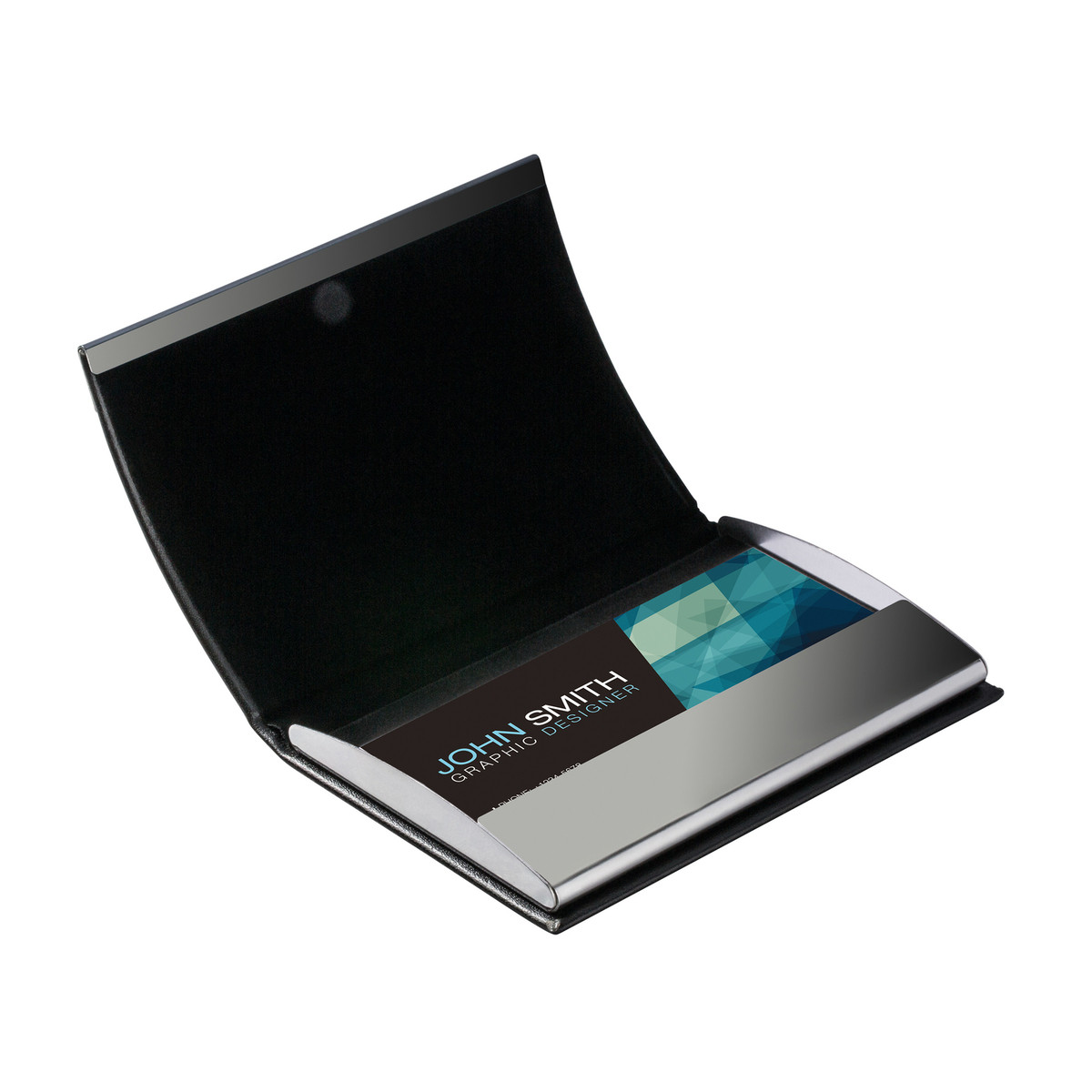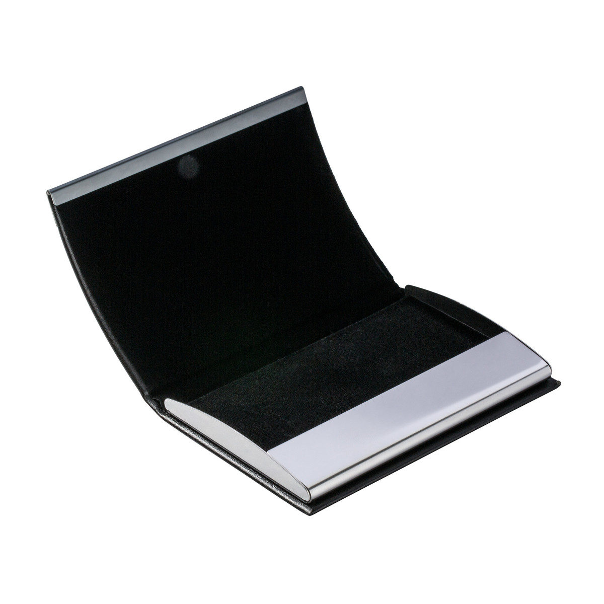 Porte-carte élégant et élancé en similicuir noir avec placage gunmetal, complété par une fermeture magnétique de qualité. Cet objet élégant tient bien en main. Selon le grammage du papier, l’étui peut accueillir env. 15 cartes de visite. Personnalisation avec gravure laser ou impression tampon 1c.Questions sur le produit "Étuis à cartes de crédit et de visite RE98-KOLLAM" ?