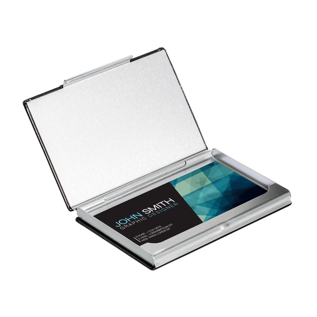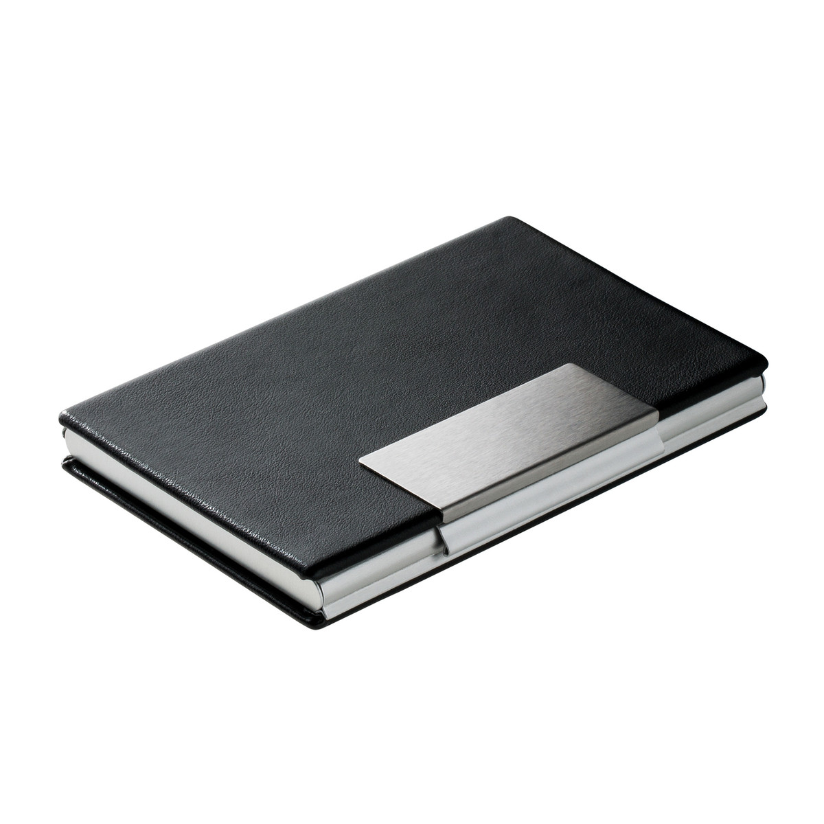 Kultiviertes Schwarz und eine mattsilberne Gravurplatte sorgen dafür, dass Sie mit diesem Etui einen vornehm-distinguierten Eindruck hinterlassen.