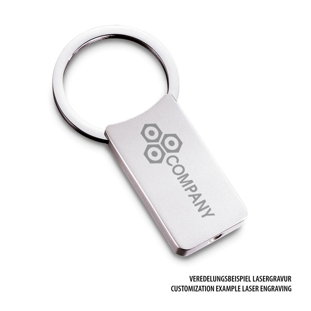 Une élégance sans fioritures : vous pouvez personnaliser ce porte-clés classique en métal avec une élégante gravure laser pour en faire le support promotionnel ultime.Conseil : vous voulez la taille du dessus ? Alors, nous vous recommandons le porte-clés 10062.