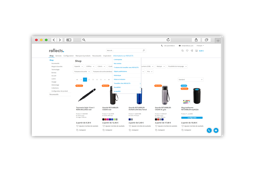 Connaissez-vous tous les services et possibilités de notre site Web ? La boutique en ligne REFLECTS® est à votre disposition 365 jours par an, 24 heures sur 24. Elle vous offre à tout moment la possibilité d’accéder à nos produits et services.