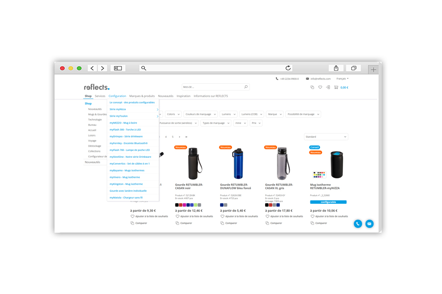 Nous développons constamment notre boutique en ligne et vous proposons différentes applications. Cela comprend par exemple le calcul de votre marquage ou la configuration de certains produits directement en ligne. En plus, un accès à la boutique en ligne vous permet de gérer vos propres données et commandes.