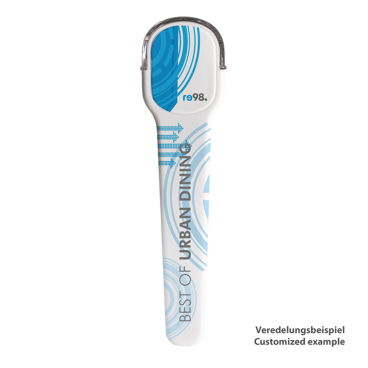 Afin de faire de ce set pratique un ambassadeur de marque réussi, nous proposons la tampographie ou l’impression UV sur la boîte, ainsi que la gravure laser sur les couverts. L’article est livré dans un emballage cadeau 1C.