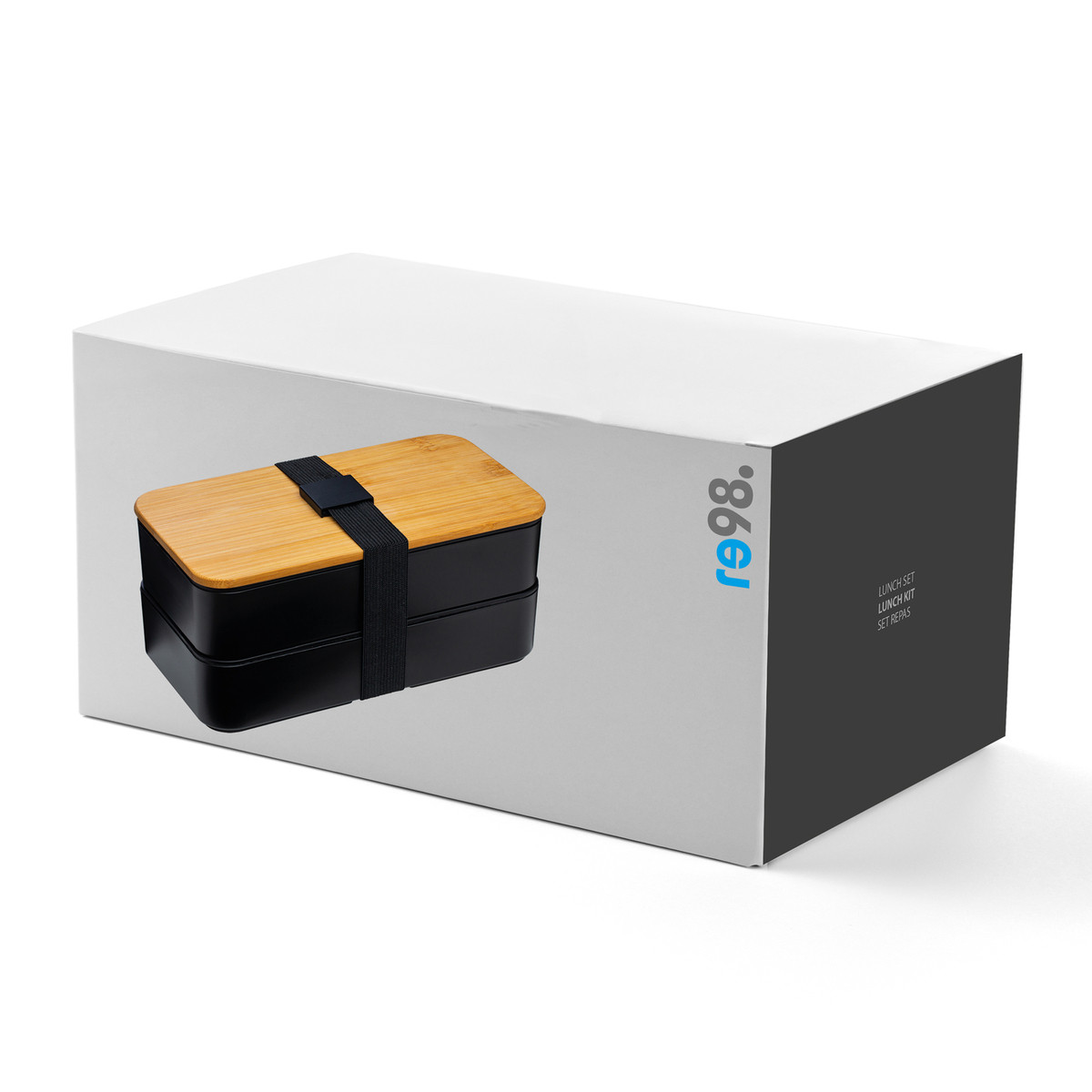 Que ce soit pour le travail, l'école ou les loisirs - les lunch box sont des objets utilisés quotidiennement par de nombreuses personnes avec une haute durée d’utilisation. Intégrez votre message publicitaire dans le quotidien des clients et faites leur plaisir avec notre équipement polyvalent RE98-Laudat.La lunch box comporte deux récipients noirs de 500 ml, qui sont séparés par une unité de séparation. L'unité de séparation contient un ensemble de couverts noirs en plastique, composé d'un couteau, d'une fourchette et d'une cuillère. Les couverts y sont bien rangés et serrés dans les fixations correspondantes. Un séparateur de nourriture pour l’une des deux boîtes est également inclus.