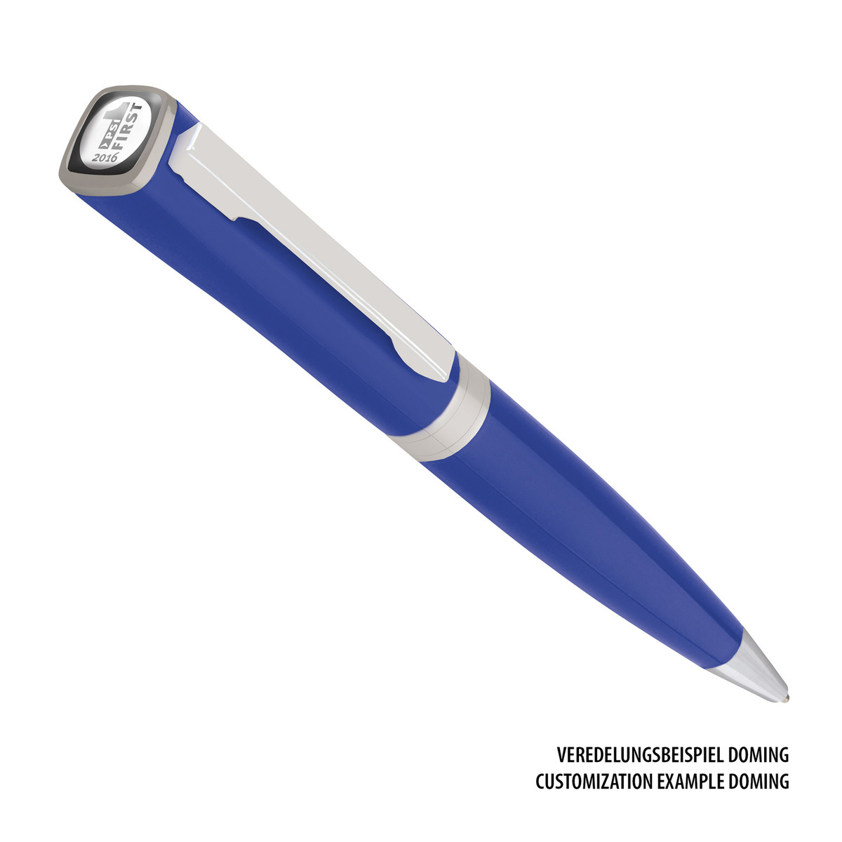 Exclusif chez CLIC CLAC: ce stylo à bille qui porte votre logo a un véritable caractère de stylo de marque, grâce à un effet doming individuel raffiné. Le doming carré est fixé sur la tête du stylo.
