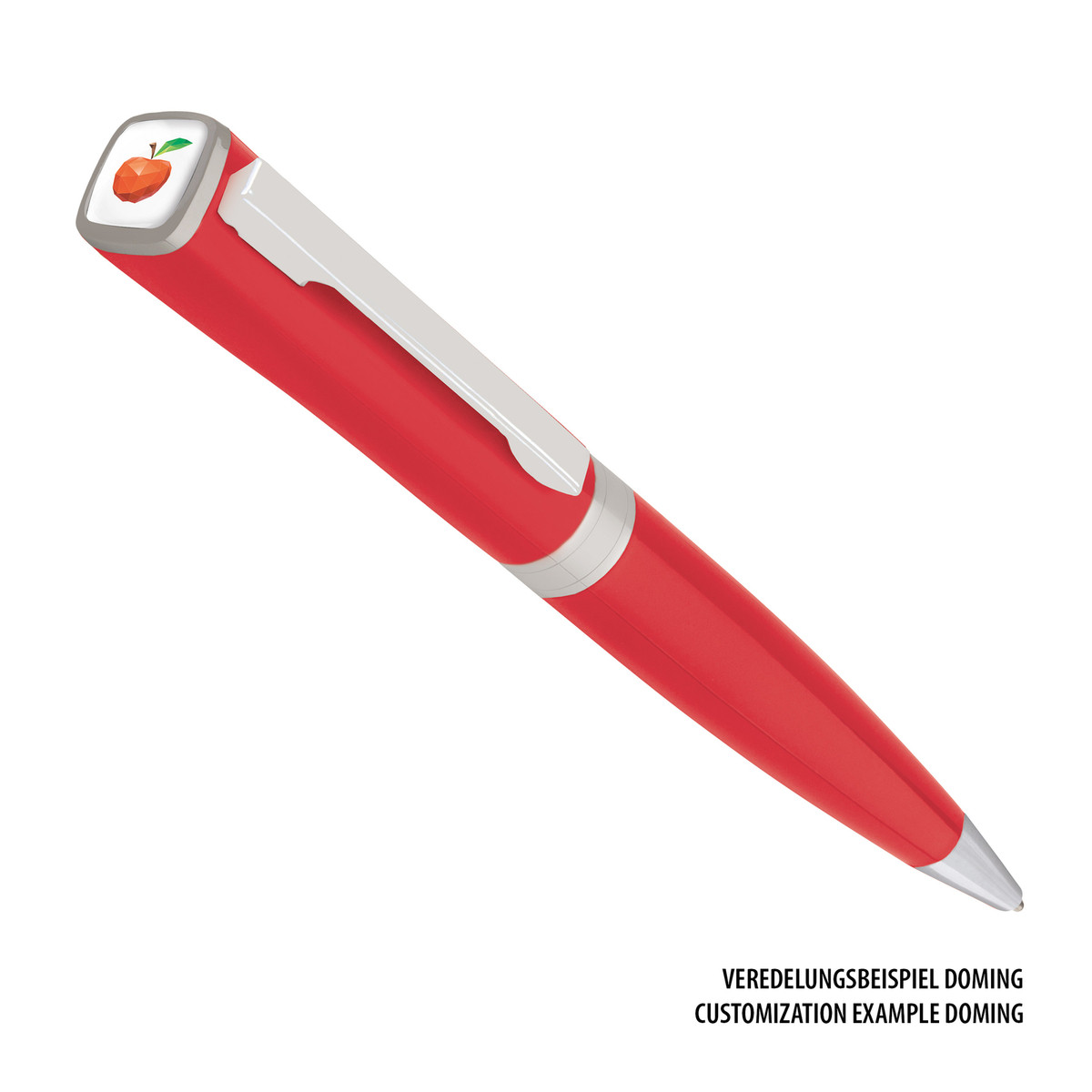 Exclusif chez CLIC CLAC: ce stylo à bille qui porte votre logo a un véritable caractère de stylo de marque, grâce à un effet doming individuel raffiné. Le doming carré est fixé sur la tête du stylo.