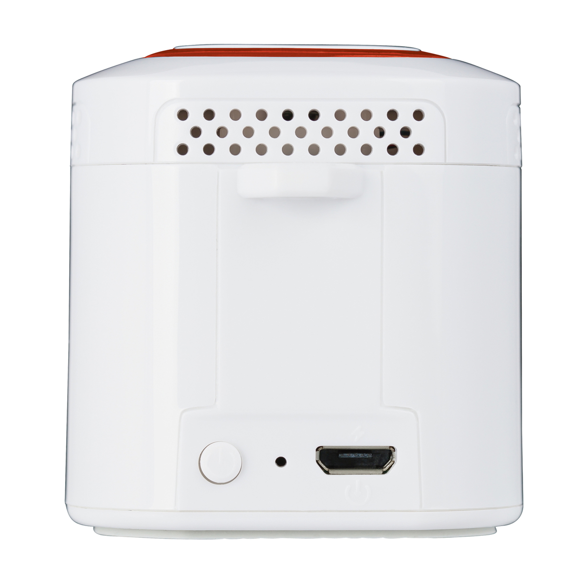 Deze kleine maar klankrijke Bluetooth®-luidspreker met Bluetooth®-technologie 4.1 (met een bereik van 10 m) kunt u eenvoudig aansluiten op uw smartphone of tabllet. De luidspreker heeft een speeltijd van vier uur. De speaker wordt geleverd met een 2-in-1-laadkabel en een 3,5 mm connector om ook per kabel een verbinding tot stand te brengen met uw toestel. Het uitgangsvermogen bedraagt 2 Watt. De gekleurde ring is voorzien van een led-achtergrondverlichting.