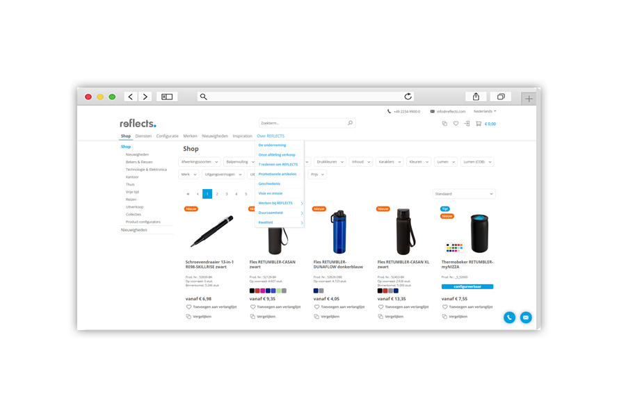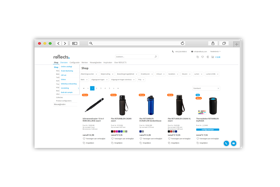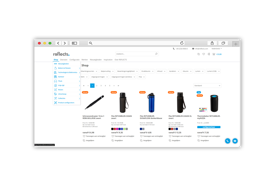 Kent u alle diensten en mogelijkheden van onze website? De REFLECTS® webshop staat 24/7 voor u ter beschikking. Het geeft u de mogelijkheid om op elk moment onze producten en diensten te bekijken en te gebruiken.