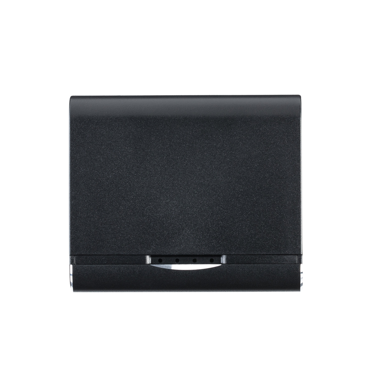 Kan met een lasergravure op de aluminiumzijde van de oplader of met een bedrukking op de grotere kunststofzijde worden bewerkt.