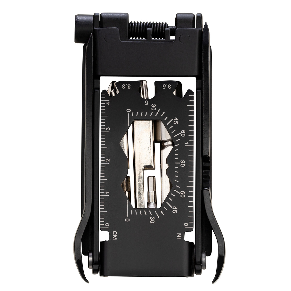 Praktische functies zoals een flesopener, liniaal en gradenboog maken de multitool compleet.