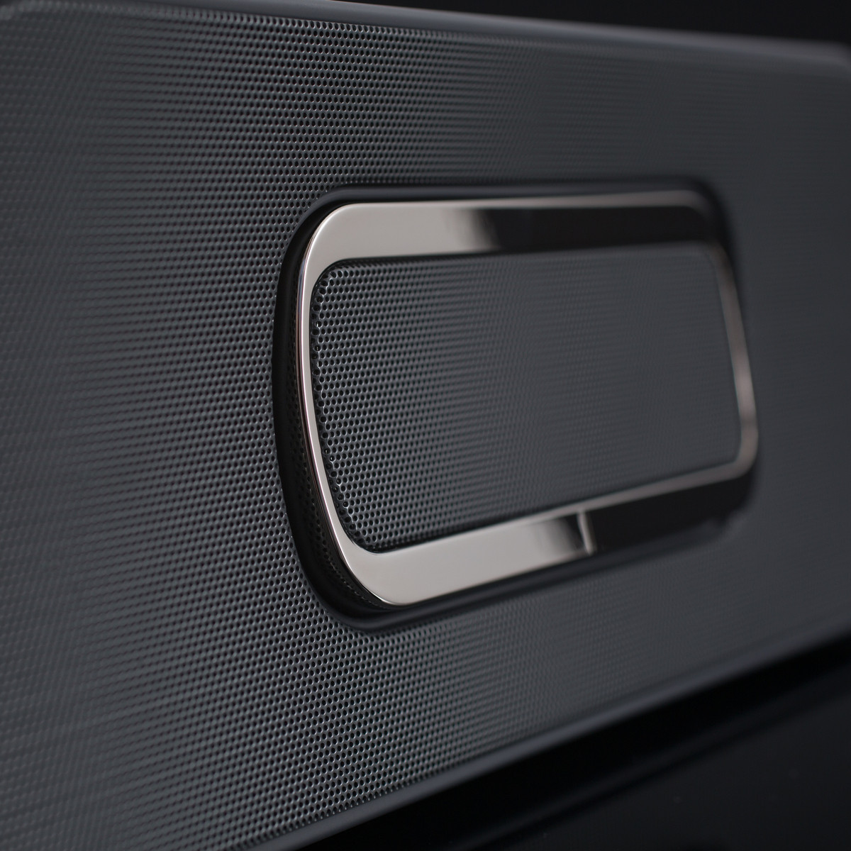- High-performance, hoogwaardige luidspreker in mat zwarte metalen afwerking met geïntegreerde handsfree inrichting en AUX-ingang.