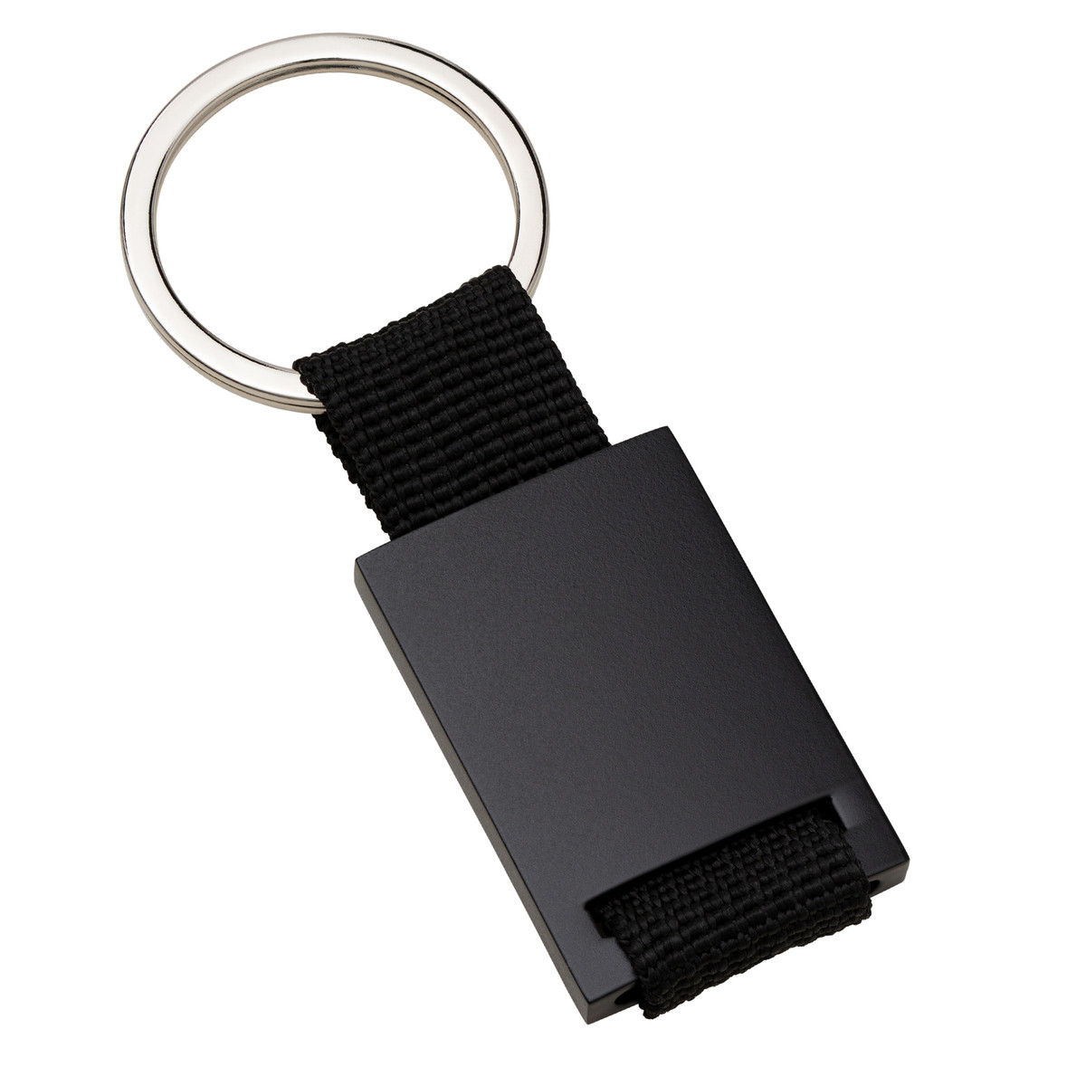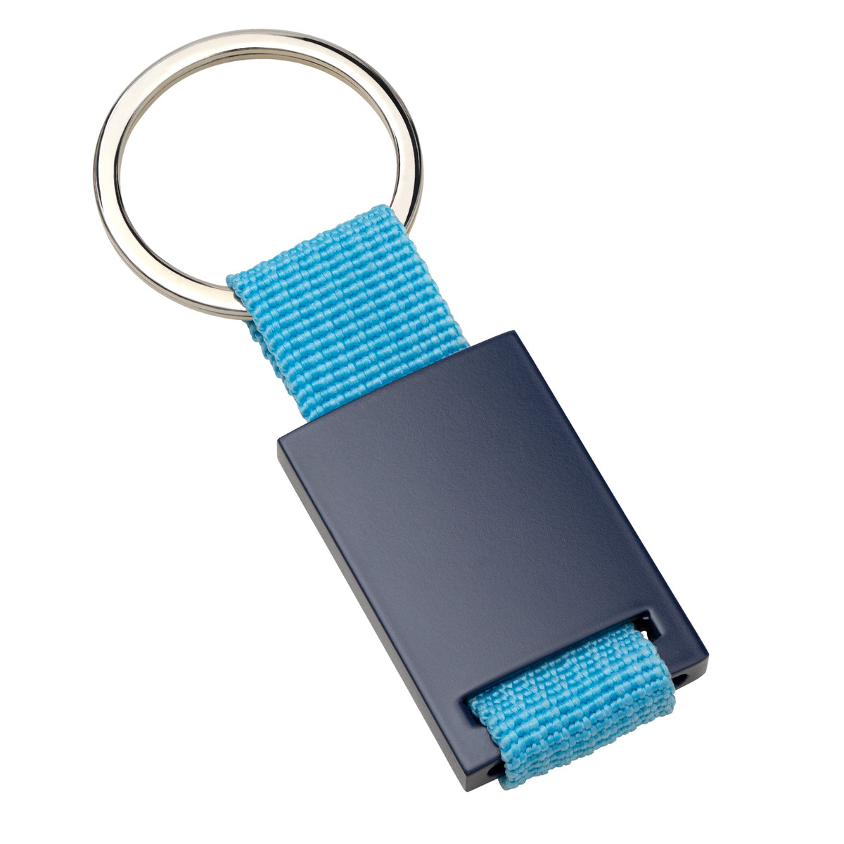 Sleutelhanger van metaal en rood textielbandje