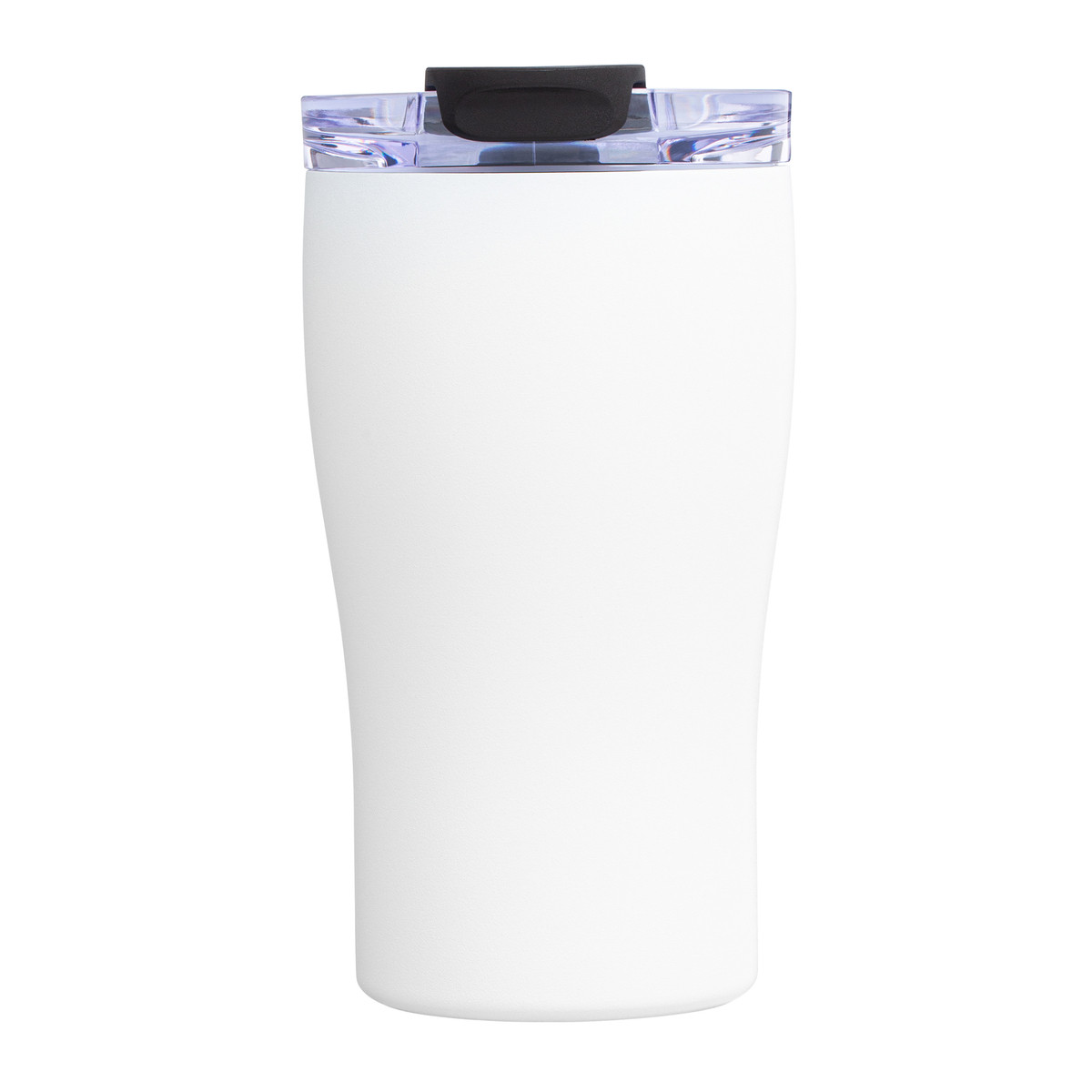 Dankzij de dubbelwandige koperen vacuümisolatie houdt de thermobeker dranken warm tot 4 uur en koud tot 24 uur. De lekvrije omklapdeksel is gemaakt van PP en AS kunststof.