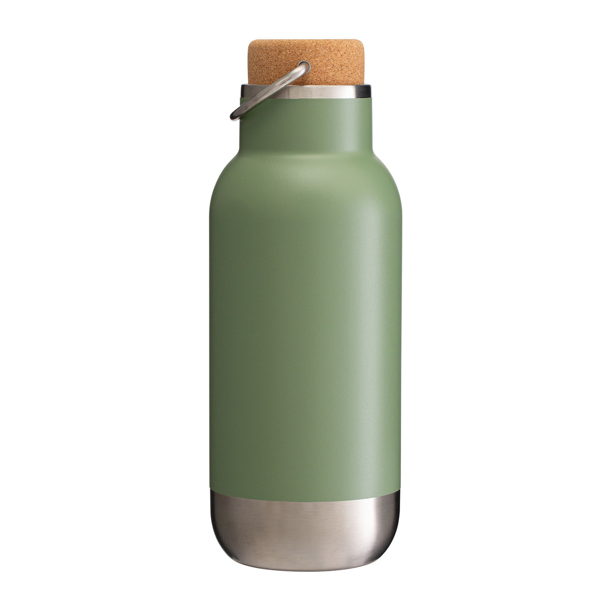 Groen 500 ml thermofles gemaakt van gerecycled roestvrij staal met een kurk deksel